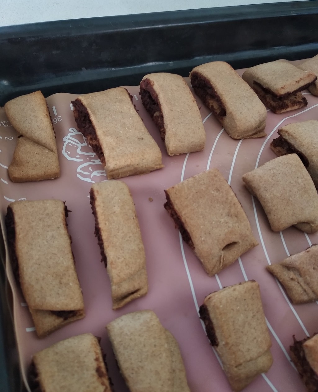 מרגישה צורך לשתף דרך נוספת לאכול עוגיות עם שוקולד.. בילדותי ממש אהבתי לאכול את העוגיות קעקות הטוניסאיות יחד עם ממרח שוקולד נוטלה… וכיום כשהממרח נוטלה מוכן בבית מחומרים טובים ובאמת עם אגוזי לוז ולא בטעם אגוזי לוז, אז בכלל זה מושלם… אפשר לקחת עוגייה אחת אפויה ולמרוח מעליה, ואפשר 2 עוגיות (אפויות) ולמרוח ממרח נוטלה ביתי בין שתי שכבות העוגיות….טעים ברמות שאין דברים כאלו.. וזה גם פרווה, אז זה יתאים כקינוח לאחר ארוחה בשרית…
