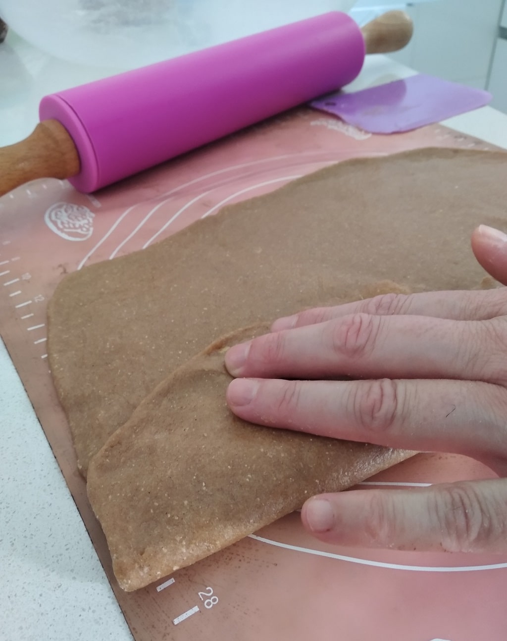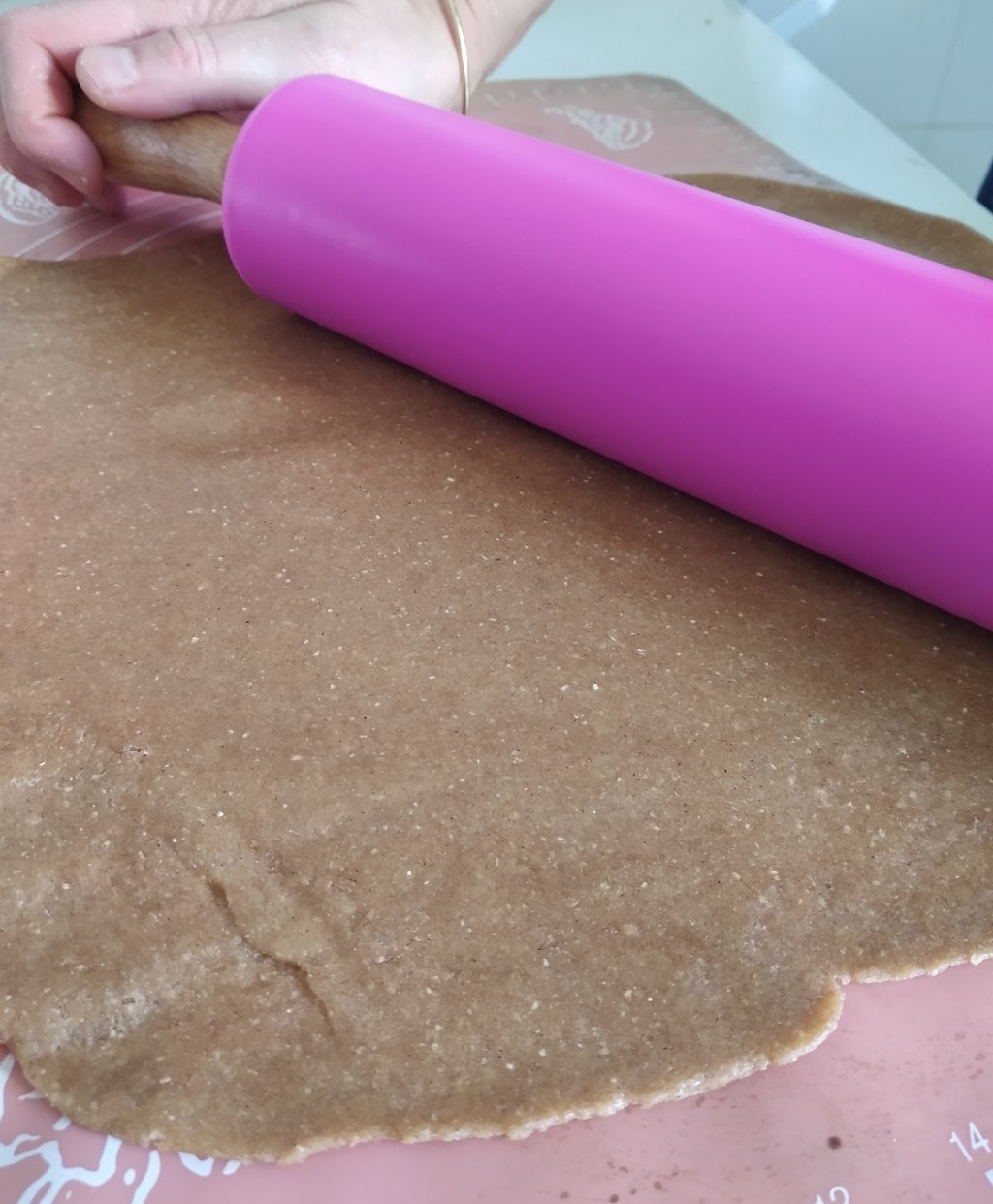 - ניקח חתיכה מהבצק ובעזרת מערוך נרדד לעלה דק.