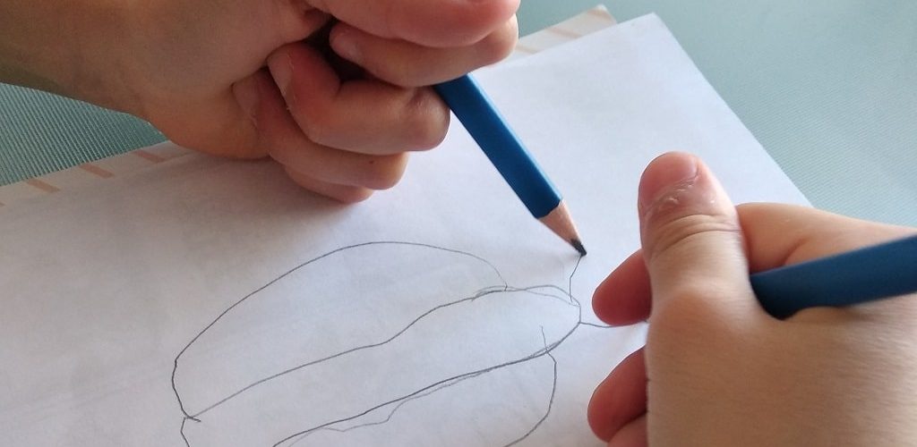- אם ילדים מתקשים ממש (אין כל מטרה ועניין לתסכל ילדים בפעילות הזו…) אפשר לתת להם לצייר ביד אחת כל פעם (לא בו זמנית) בהתחלה עם היד הדומיננטית לכמה רגעים ואז לעבור לצייר ביד החלשה