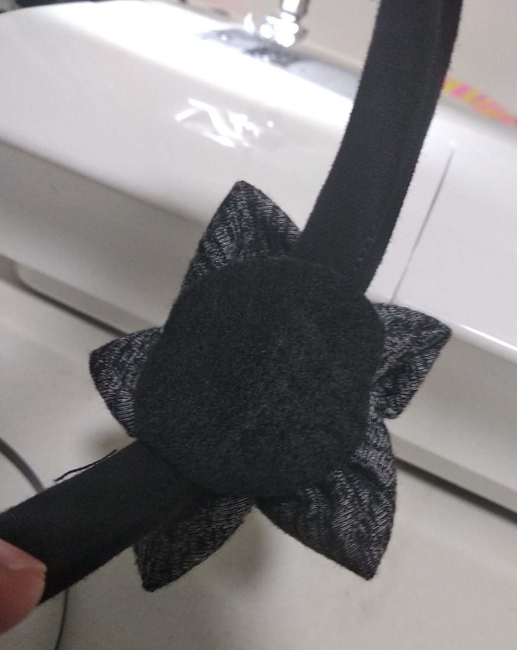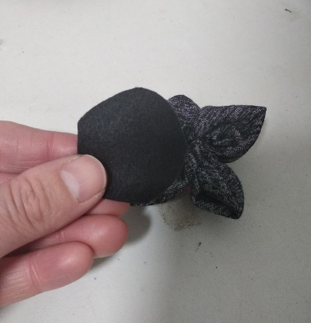 - הדבקת הקישוט: משתמשים ברצועת לבד בתחתית הקשת ומדביקים אותו לעיצוב, כדי לתפוס את האובייקט שהכנו. חשובה מאוד, כך אם יש איזו בעיה עם הקשת, למשל אם נשברה, מספיק יהיה להסיר את הלבד, והאביזר שהכנתן יישמר.