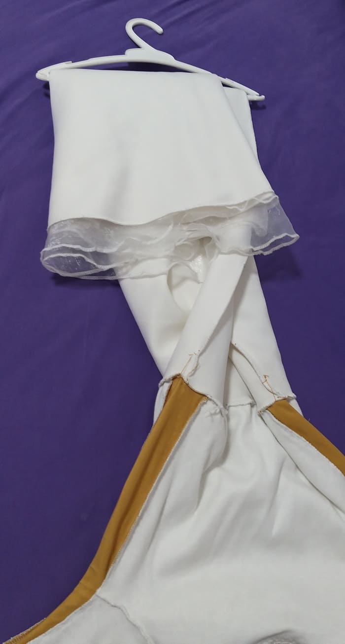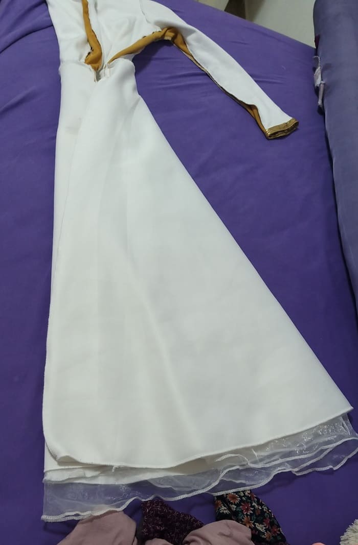 - נקפל את צדדי השמלה מתחתיתה. אפשר לפרוס את השמלה אם יותר נוח לכן, זה לא חובה.