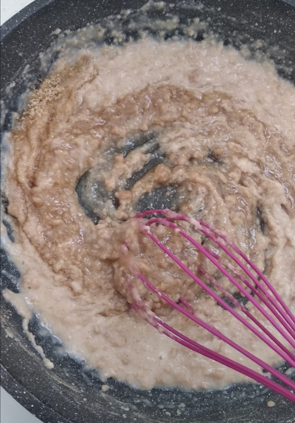 - כדי להימנע מיצירת גושים יש לערבב כל הזמן בעזרת המטרפה ולהוסיף את הקמח והמים בהדרגה. במידה ונוצרו לכן גושים, אל דאגה הם לא מורגשים כלל באכילה. הם גם נמעכים בקלות….