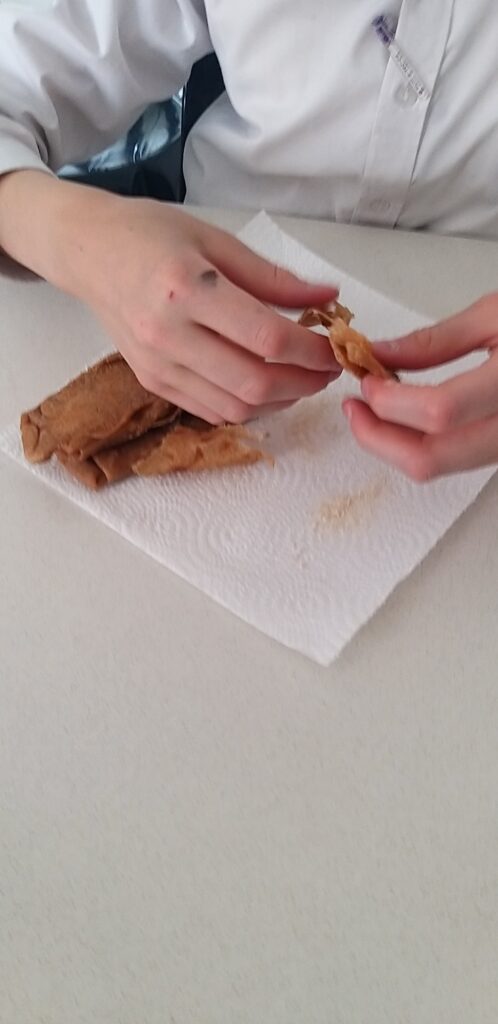- לאחר שקאהי מוכן, נעביר אותו לצלחת עם נייר סופג (שיספוג את מירב השמן שאפשר…)