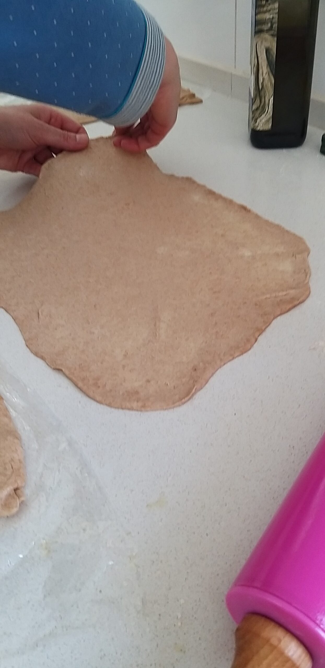 - ניקח את הריבוע הראשון שיצרנו, נניח על השיש המשומן נשטח ונרדד קלות.