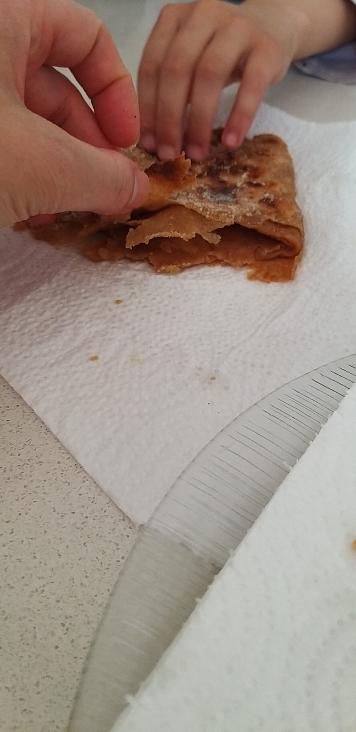 - מי שבכל זאת תרצה להשתמש בחמאה/מרגרינה צריך למרוח שכבה של חמאה/מרגרינה ליצירת העלים. ולכן במקום למרוח שמן ולפזר קמח תפזרו שכבה דקיקה של חמאה/מרגרינה במקום. תקפלו שוב תמרחו ושוב תקפלו… במצב הזה החמאה/מרגרינה הרבה יותר שומניות ואין צורך לשמן את המחבת. ברגע שתניחו השומן שלהן יימס במחבת.