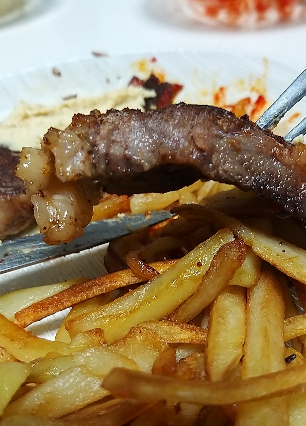 - הסטייק במחבת או בפלנצ'ה לא מטוגן עם שמן נוסף. רק עם השומן שעל הבשר. זה מזכיר קצת כמו צליה בתנור.
