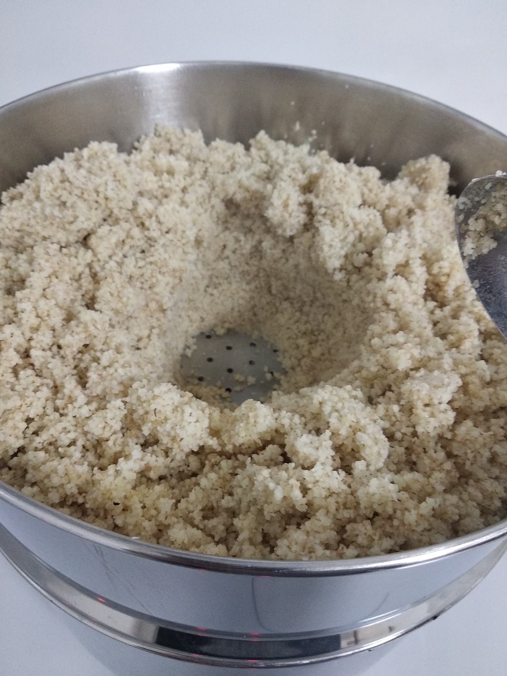 - בחלוף הזמן, מערבבים את הקוסקוס בזהירות ומעבירים לסיר האידוי של הקוסקוס לבישול באדים למשך 20 דק'.