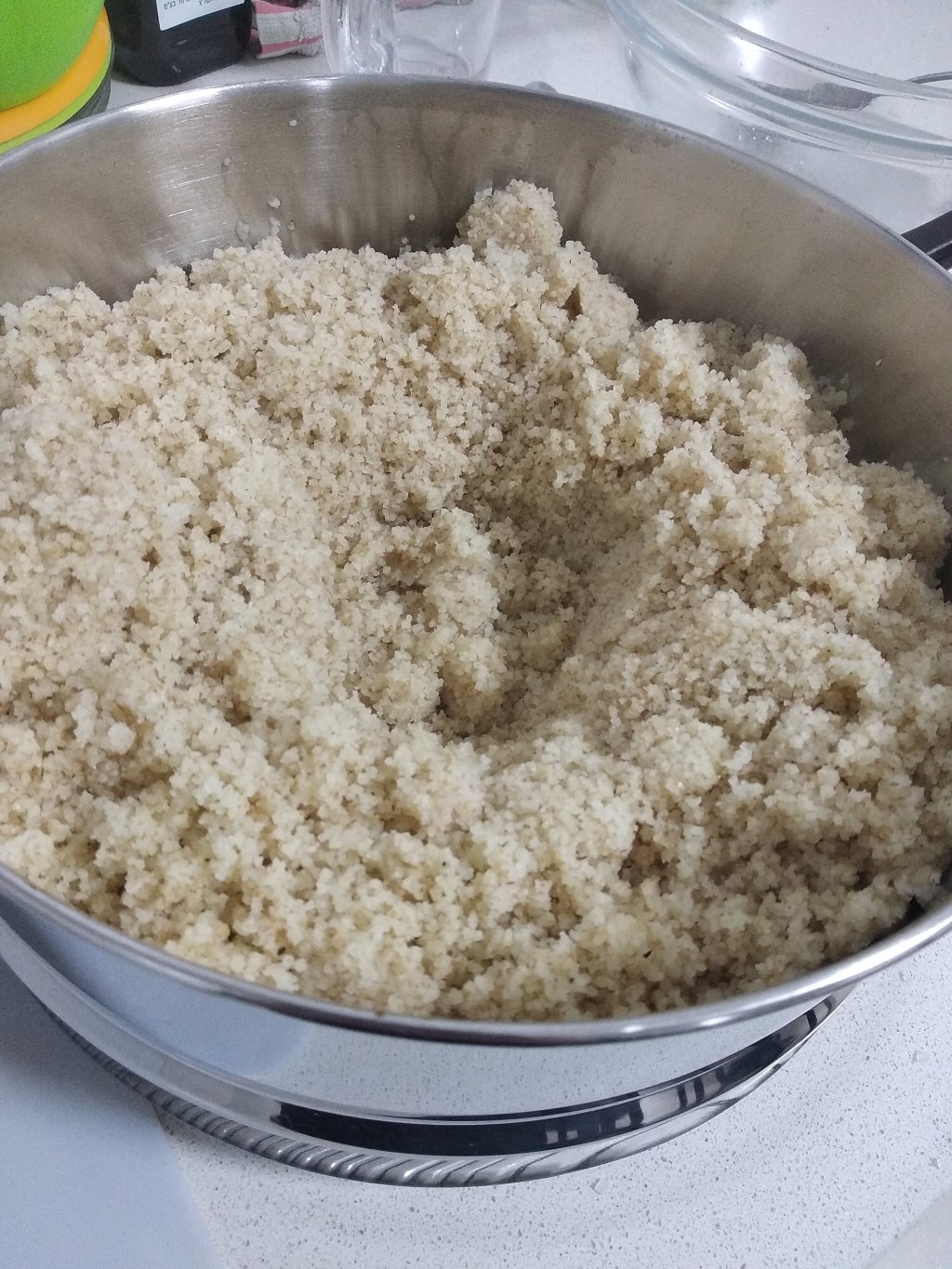 - לתוך קערה מכניסים את הקוסקוס המלא ובודקים אותו.