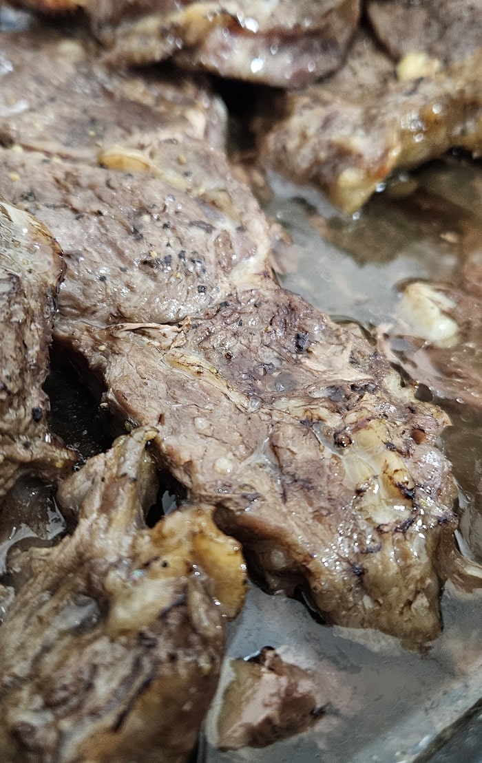 - מניחים את הסטייקים כך לזמן מה לפחות חצי שעה ואפשר כל הלילה עם מכסה סגור. כך הם סופגים את טעם השום והתבלינים.