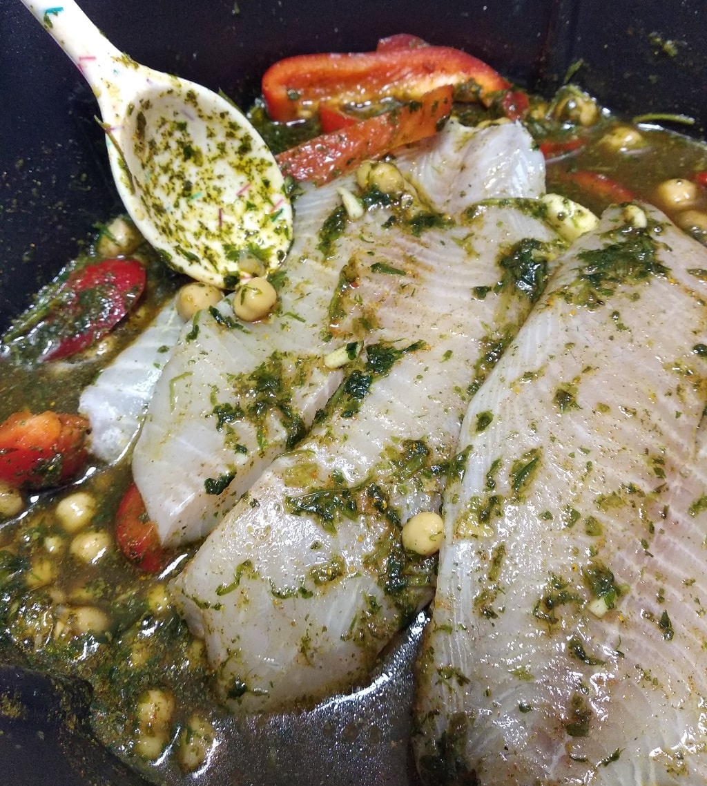 מתכון לדג אמנון בתנור עם עשבי תיבול וגרגירי חומוס