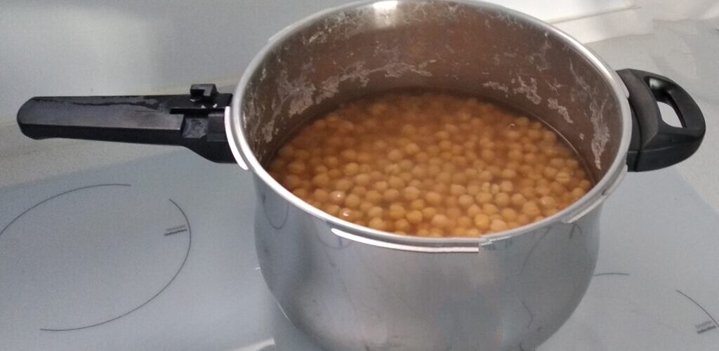 - מכניסים לסיר עם מים. המים צריכים לכסות את החומוס לפחות ב-5 ס"מ. שמנה לב, הבישול בסיר רגיל יכול לקחת זמן רב כשעה וחצי – שעתיים ולפעמים אפילו שלוש.