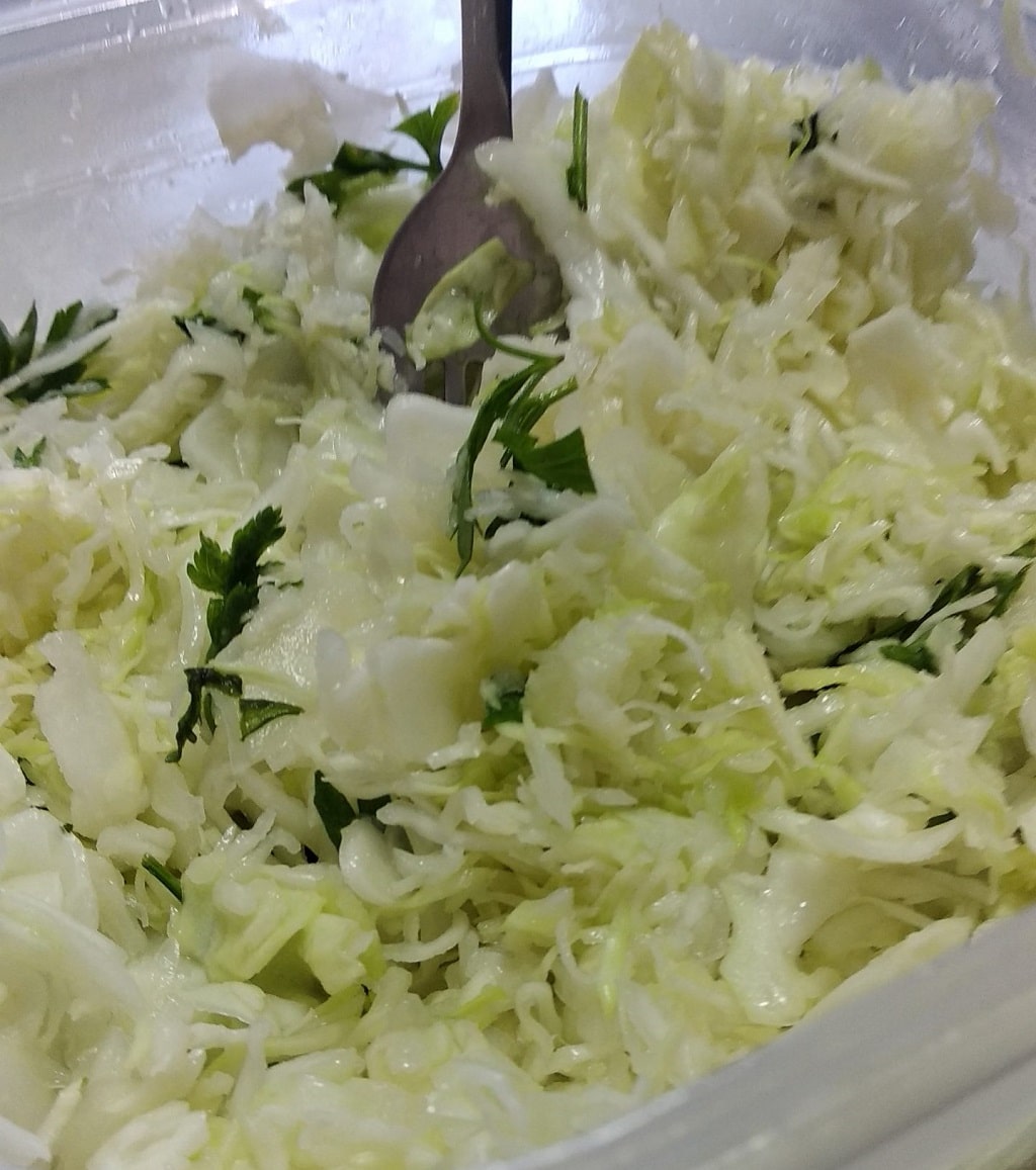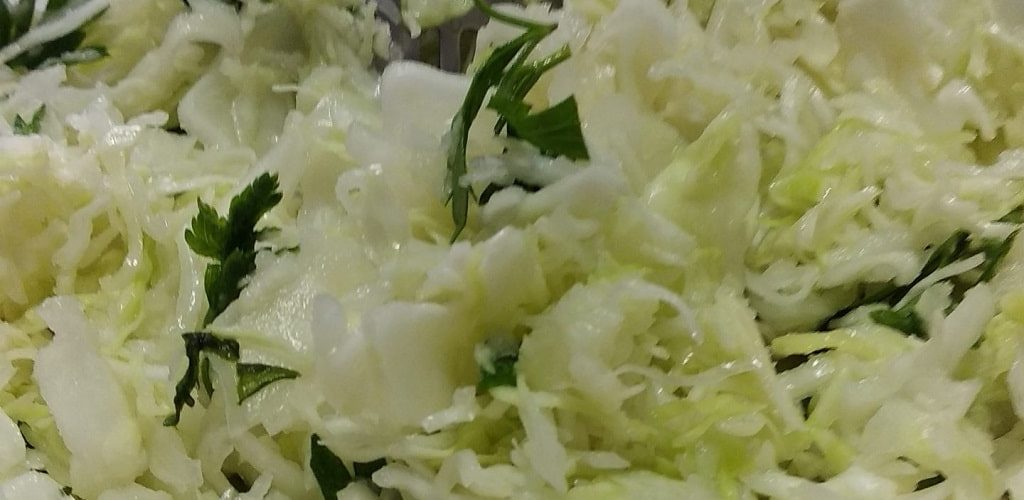תהליך הכנת סלט כרוב לבן כמו בשווארמה